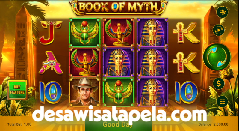 Book of Myth membawa pemain ke dunia kuno yang penuh misteri. Simbol-simbol seperti buku mistis, artefak emas, dan tokoh penjelajah membuat setiap putaran terasa seperti ekspedisi menemukan harta karun tersembunyi. Grafis berkualitas tinggi dan animasi halus memberikan pengalaman visual yang memukau, sementara latar musik yang dramatis menambah sensasi petualangan yang menegangkan. Tema yang kuat ini membuat pemain seakan terlibat langsung dalam misi menyingkap rahasia peradaban kuno.